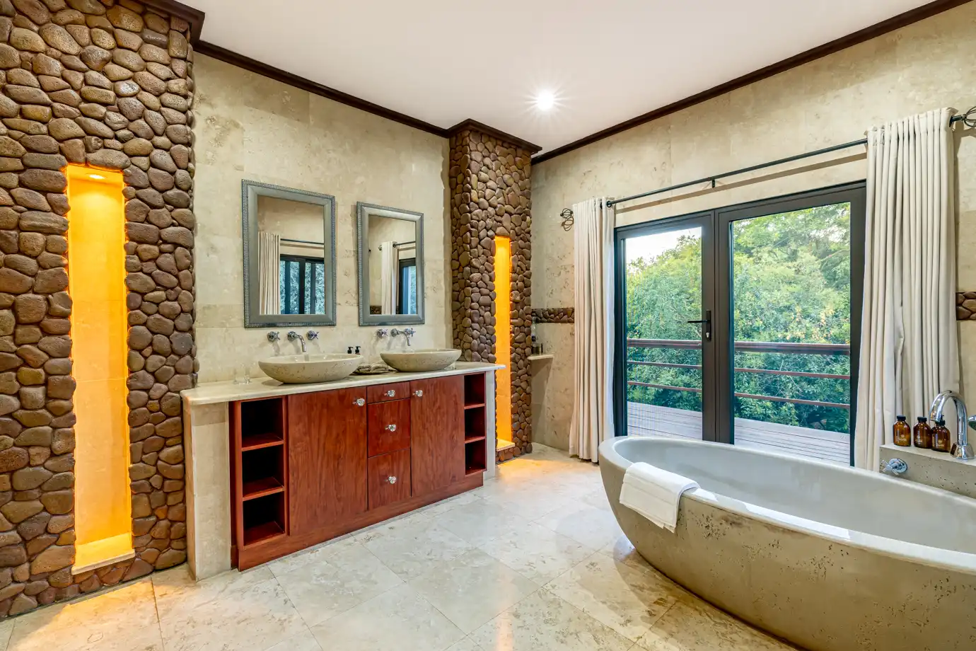 Our carefully crafted king-size beds promise nights of deep relaxation, enveloping you in comfort. The elegantly designed en-suite bathrooms feature spacious baths and invigorating walk-in showers, offering the ideal space to refresh after a day of exploring the bush.